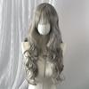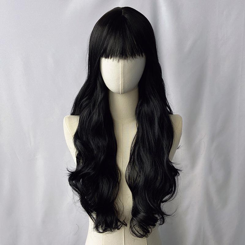 Japanese Korean Black Long Curly Hair Wig Women's Air Bangs Big Waves Synthetic Full Head Cover