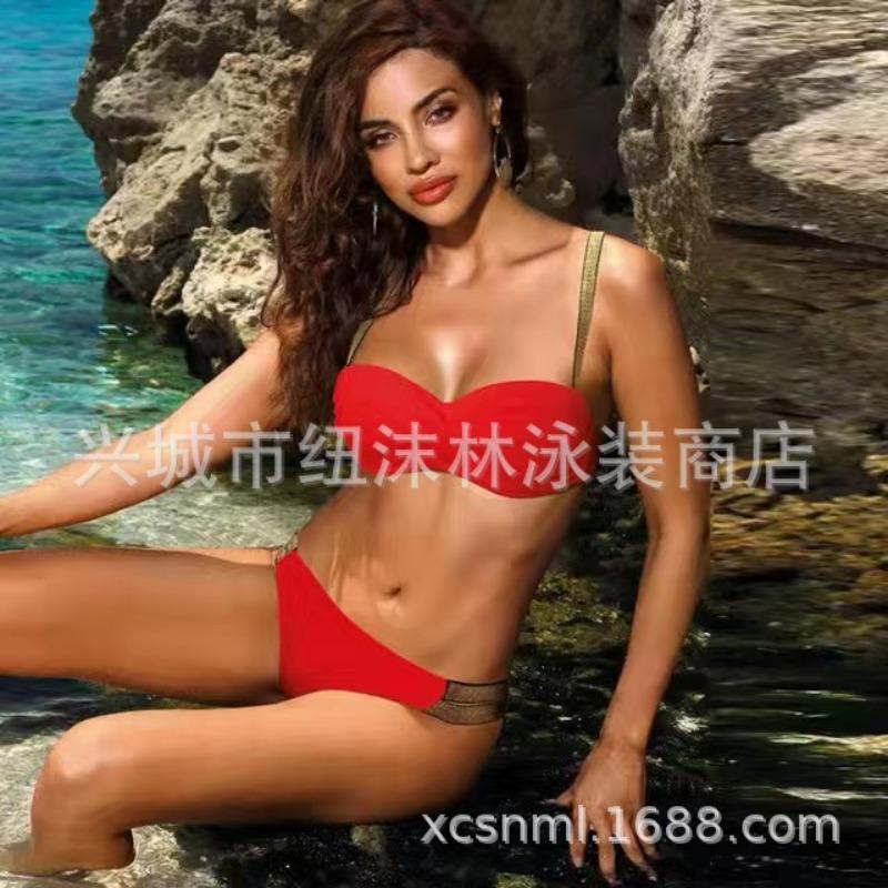 Split small breasts big breasts new swimsuit solid color sexy three-point bikini swimsuit women