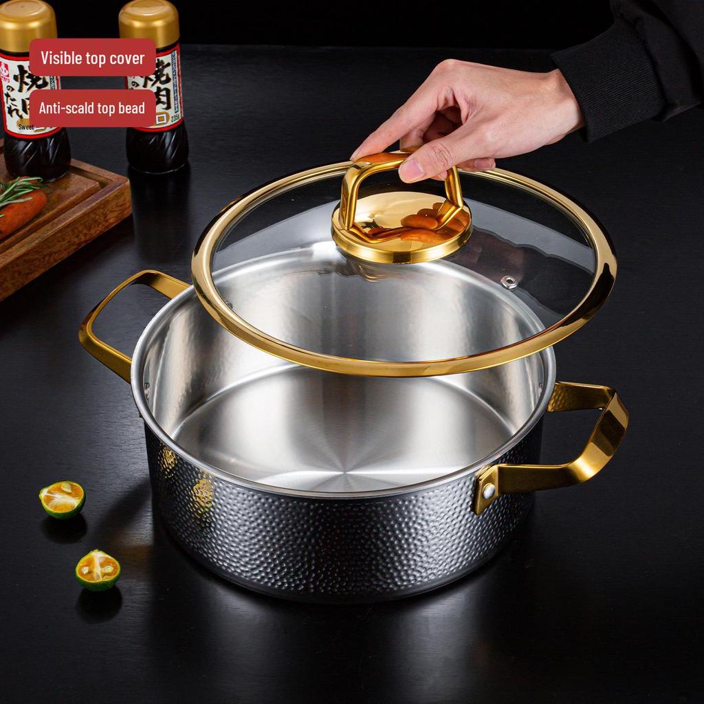 304 Edelstahl Doppelgriff Gehämmert Trennwand Hot Pot für Induktions- & Gasherde.
