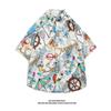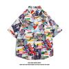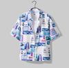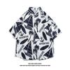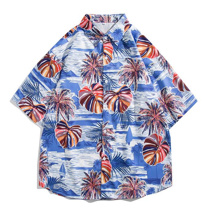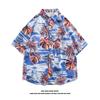 Herren Hawaiihemd Reversknopf Modedruck Kurzarm Blumenhemd Retro Sommerurlaub Strandhemd