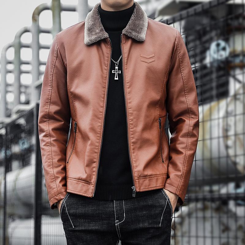 Pelzintegrierte Herrenjacke Herbst und Winter Neu Trendy Koreanischer Stil Hübsch Plus Samt Verdickt Lederjacke