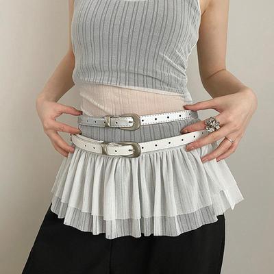 Doppelreihen-Loch Leder-Taillengürtel Vintage Punk-Stil Gürtel Retro Damen Breiter Gürtel Mädchen