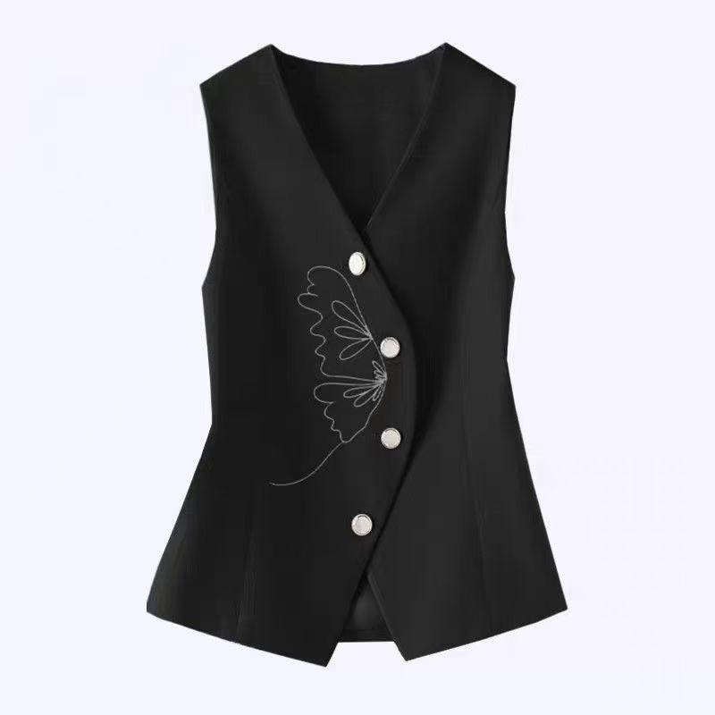 Luxuriöse Bestickte Anzugweste Frühling Herbst Schlankmachende Ärmellose Weste für Damen Trendiges Layering-Outfit
