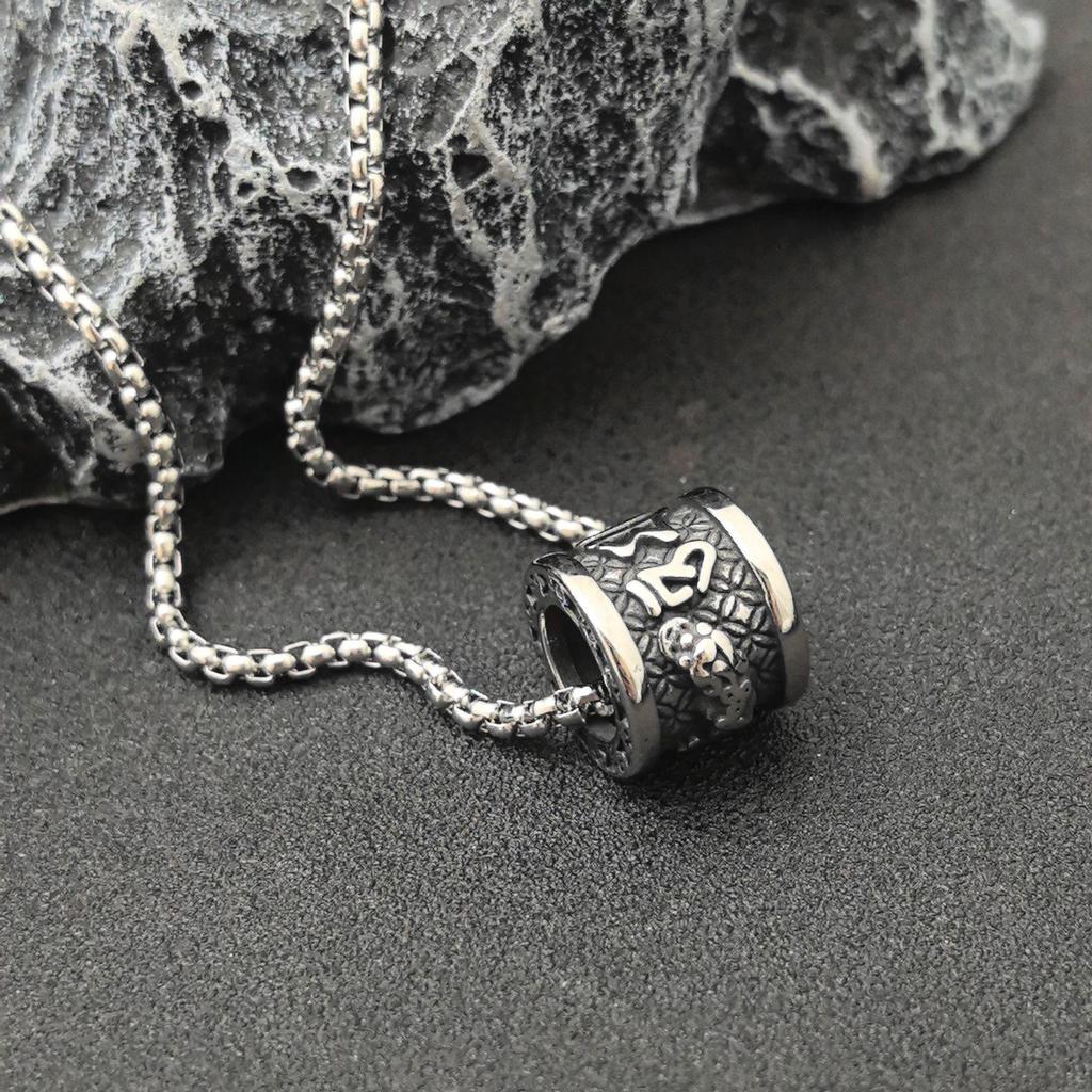 Sechs-Zeichen-Mantra Pixiu Titanstahl-Halskette für Männer - Trendiger Glücksverstärkender Perlen-Accessoire im chinesischen Stil