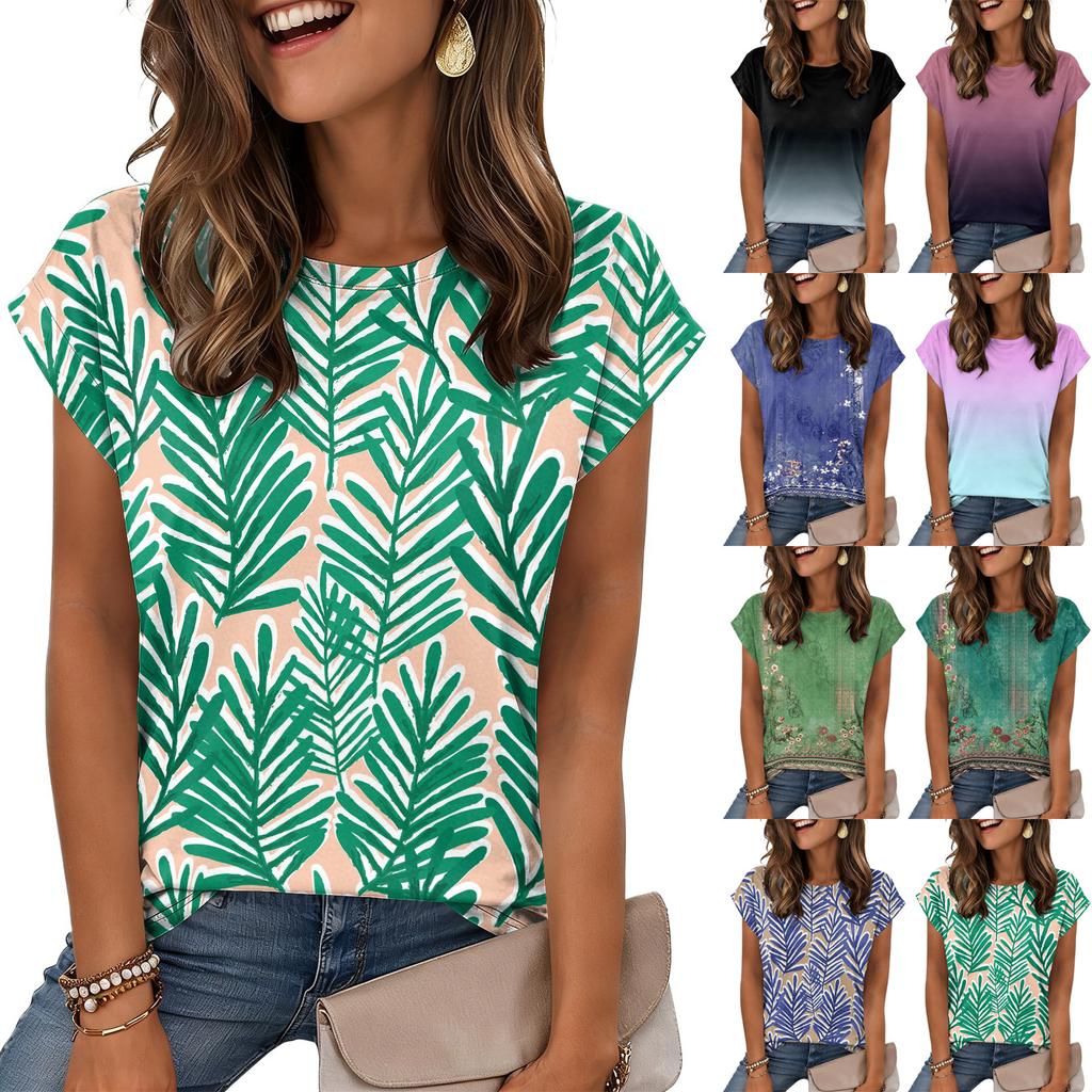 Damen Modisches Lässiges Retro-Print T-Shirt mit lockerem Schnitt