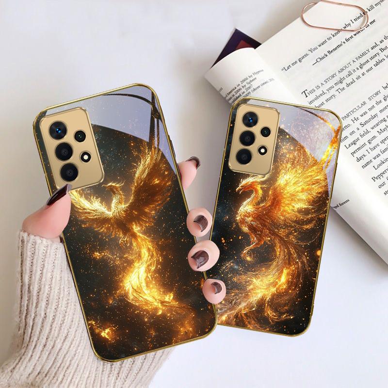 Goldener Phönix Nirvana Für Samsung A 01 52S A04 A05S A10 A12 13 22 23 24 36 42 M02 Note 10 20Ultra 8 9 Goldene Glas-Handyhülle