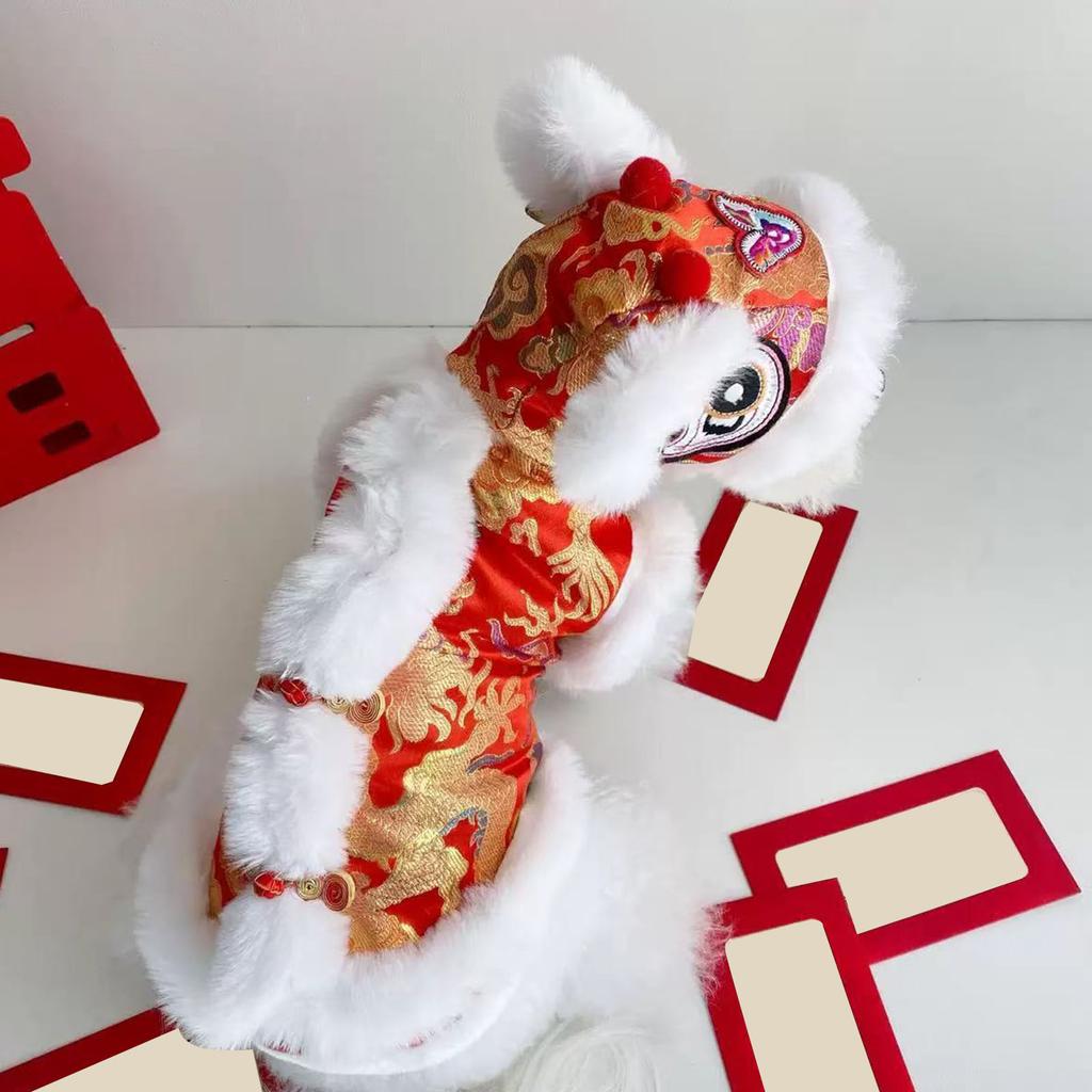 Neujahr Warmer Löwentanz Hundekostüm Niedliches Haustierkostüm für kleine mittlere Hunde Teddy Schnauzer
