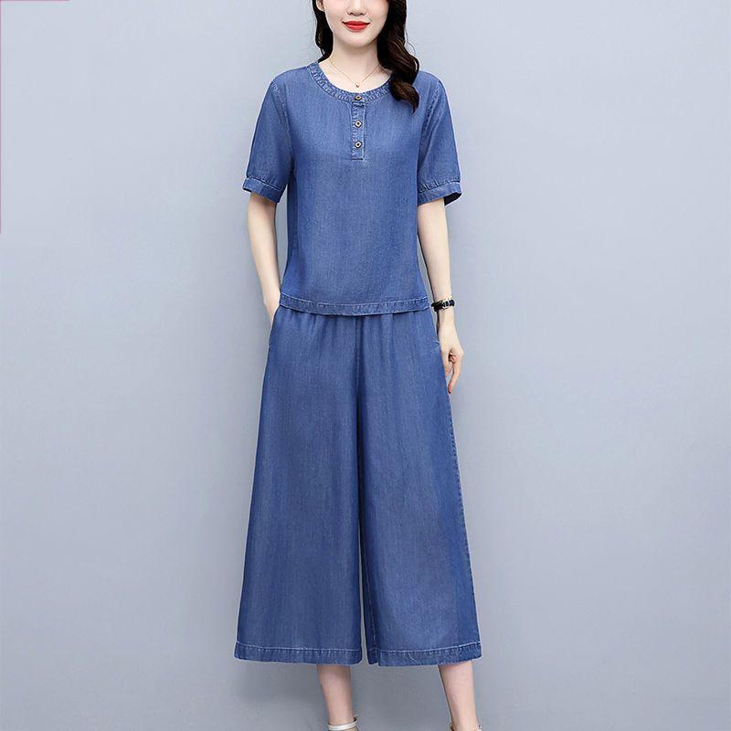 Denim Anzug Damen Sommer Cowboy 2-teilige Sets Koreanische Mode Büro Hosen Outfit Damen Lässig Damen Jeans Zweiteiler