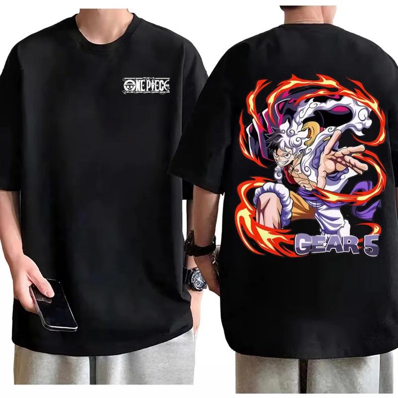 One Piece Luffy Gear 5 Nika T-Shirt Herren Baumwolle Anime Grafik-T-Shirt Rundhals Kurzarm Trendiges Lässiges Tägliches Oberteil