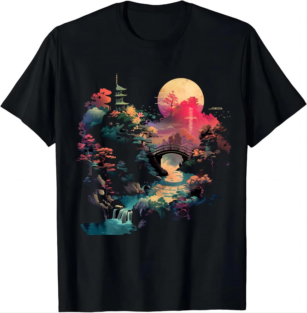 T-Shirts im Retro-Stil Serenes asiatisches Landschafts-T-Shirt Entdecken Sie den magischen Orient Unisex-Stil Shirts für Damen Herren Kleidung Streetwear