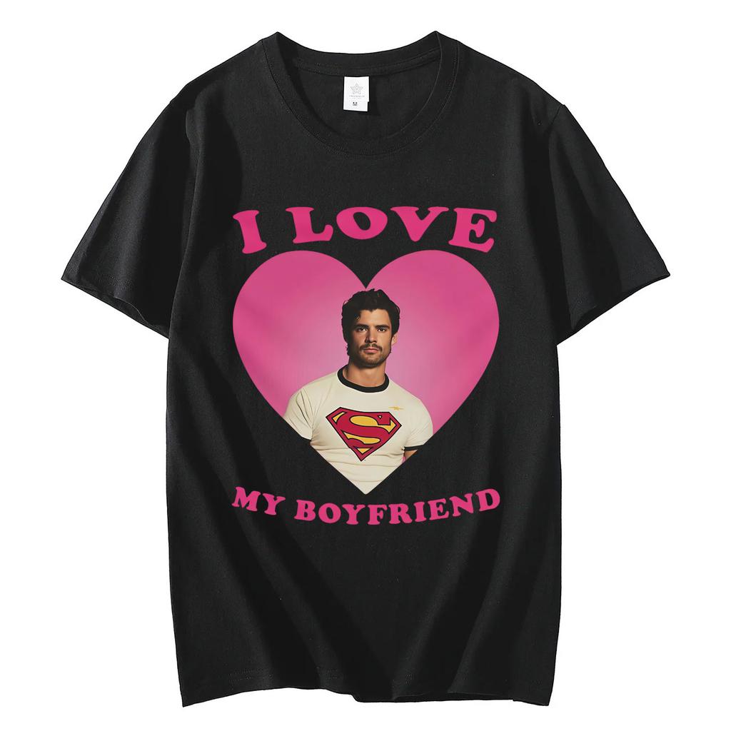 Ich liebe meinen Freund David Corenswet Lustiges Meme T-Shirt Hohe Qualität Mode Übergroße T-Shirts Herren Damen Freizeit Locker sitzende T-Shirts