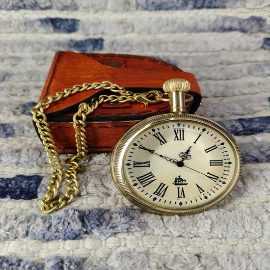 Die robuste Messingkette ergänzt das antike Finish der Uhr und sorgt sowohl für Stil als auch für Funktionalität.. Befestigen Sie es einfach an Ihrer Tasche, Weste oder Tasche für einen klassischen, raffinierten Look.