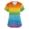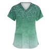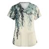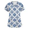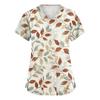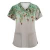 Niedlich bedruckte Arbeitskleidung für Damen, V-Ausschnitt, doppellagige Taschen, Basic-Kurzarm-Oberteil, Pullover
