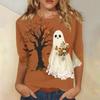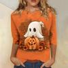Damenmode Lässig Dreiviertelärmel Halloween-Print Rundhals-Top