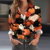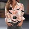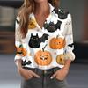 Damen Halloween Bedrucktes Lässiges Halbgeöffneter Kragen Langarmhemd