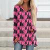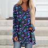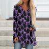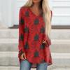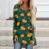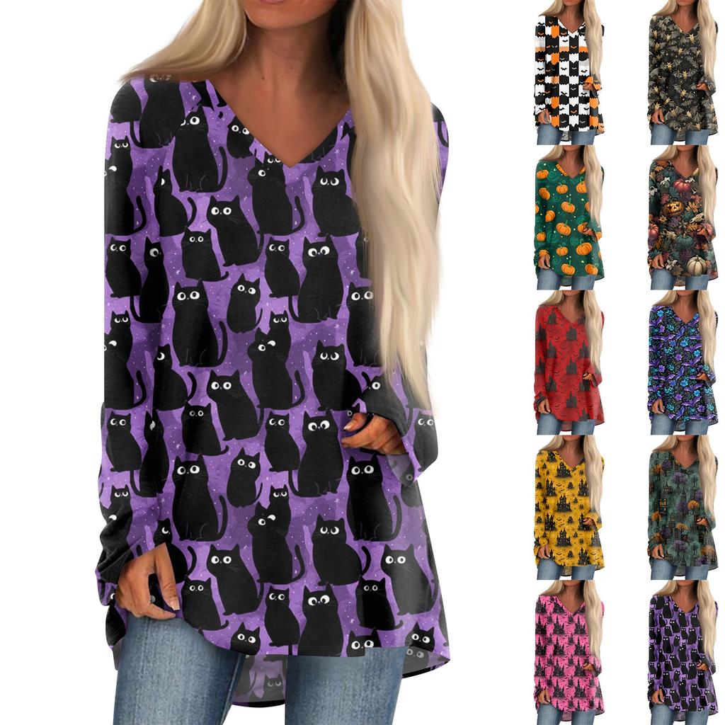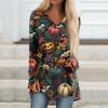 Damen Modisches Und Lässiges Halloween Bedrucktes T-Shirt Langärmlig V-Ausschnitt Mittellanges Oberteil