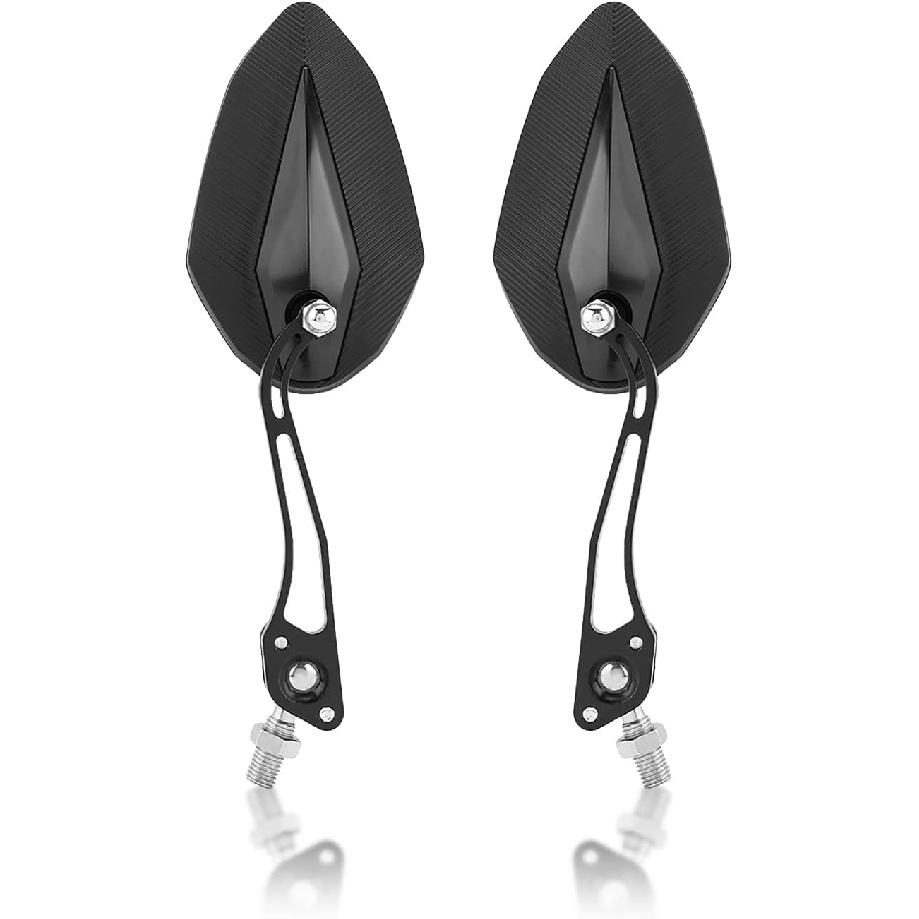 Pair of Motorcycle Mirrors, Black Aluminum Adjustable Stalk, Universal Mount for 8mm or 10mm Handlebar, for Scooters and Bikes