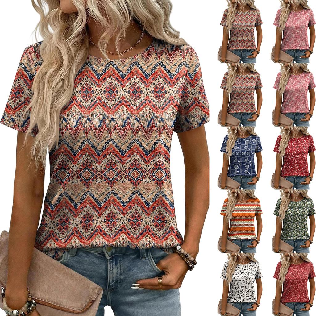Damen Mode Lässiges Bedrucktes T-Shirt mit Lockerer Passform