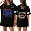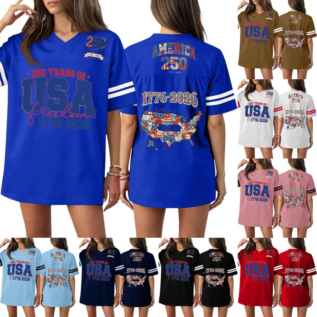Damen Casual Mode V-Ausschnitt Sport Unabhängigkeitstag Druck Kurzarm Sport T-Shirt Top