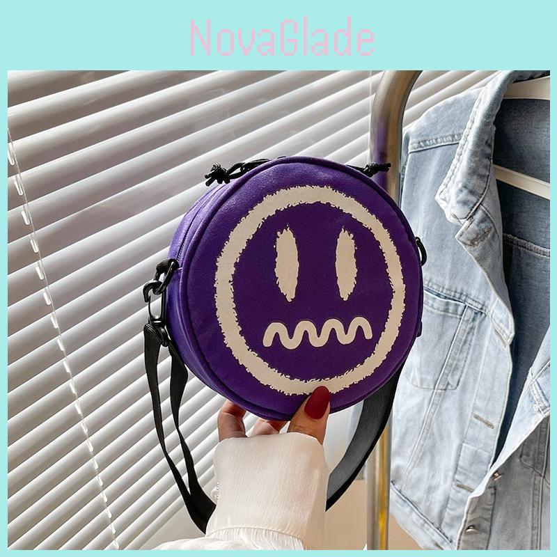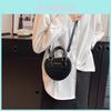 Trendy And Stylish Black Oxford Fabric Round Bag For Women With Soft Shoulder Strap