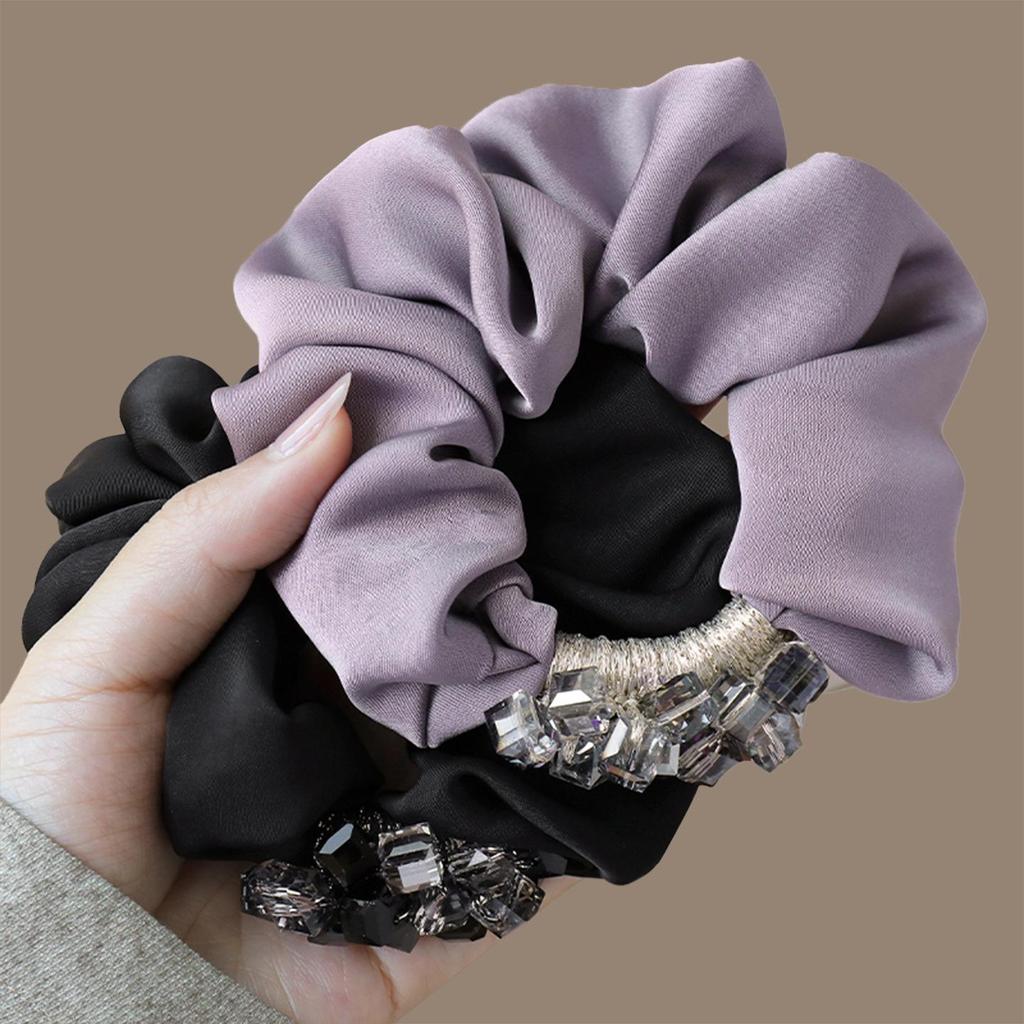 Elegant Satin Rhinestone Scrunchie for Women - Luxurious Hair Tie for Ponytails and Buns