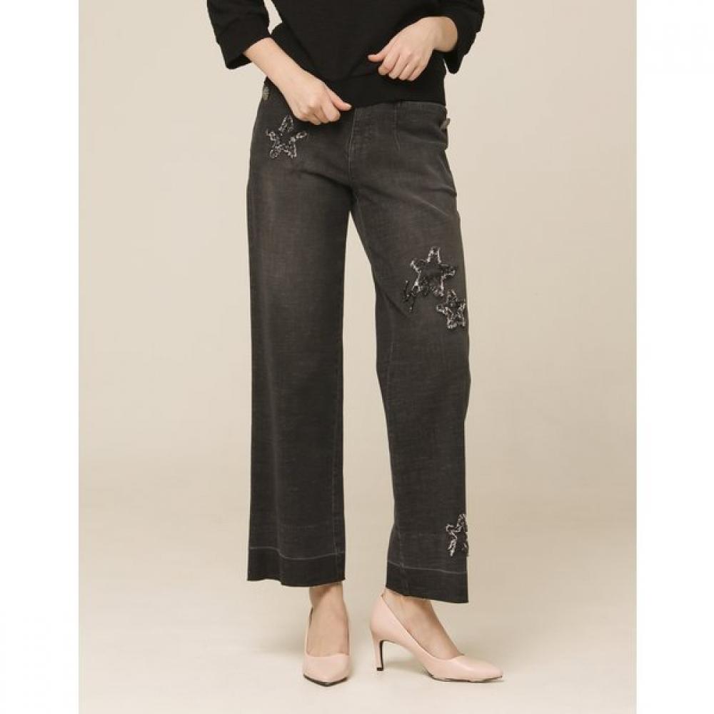 The Multi Star Embroidered Denim Pants ZJL6161021 feature a straight fit that creates a stable silhouette and a design that highlights its unique pattern. The pocket line and multi-star embroidered detail on the front provide a charm that differentiates it from basic denim. Made with lightweight fabric for a comfortable fit, it effortlessly matches a variety of tops with its naturally flowing silhouette. These pants can be used in both everyday styling and as a statement piece.