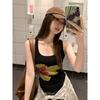 Korean Fashion Watercolor Flower Collar Sling Vest Women's Summer New Temperament Slim and Thin Design Top