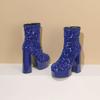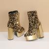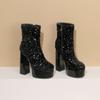 Damen Seitlicher Reißverschluss Silberne Western Cowboystiefel Retro Mode Schwarze Stiefel Plateau Stiefel Reißverschluss Chunky Absatz Schnalle Vintage Mode