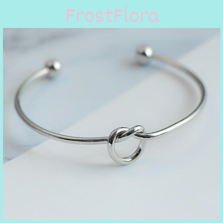Minimalist 2mm Thin Titanium Steel Love Heart Knot Bangle Chic Knot Cuff Bracelet