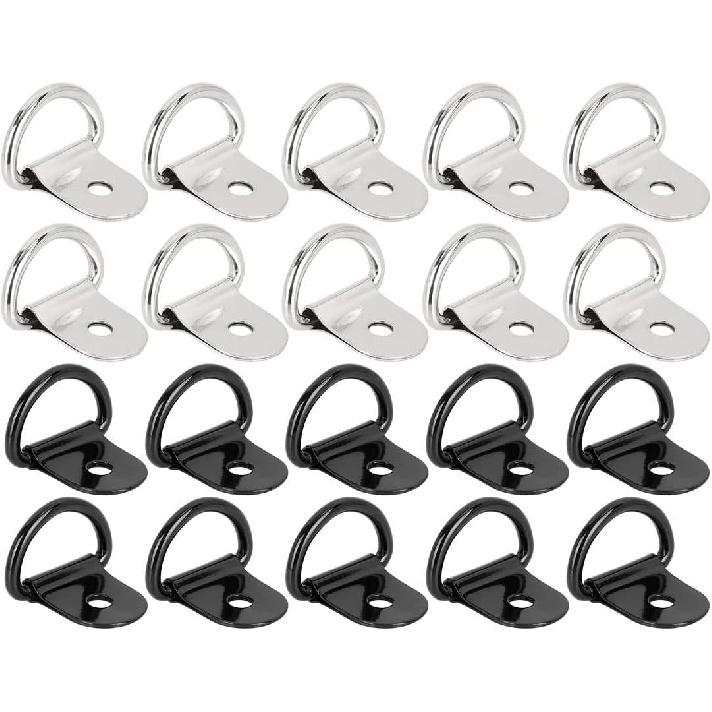 Unifizz 20pcs D Shape Tie Down Rings Tow Hook for Car Truck Trailer Cargo RV Boats Silver Tone Black Tie Down Anchors Lashing Rings