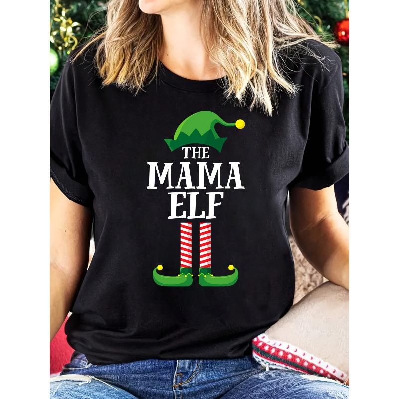 Orientierte Mama Grün Elf Gestreifte Socken, Mama Elf Passendes Familien-Gruppen-Weihnachtsparty-Print-T-Shirt, Kurzarm Rundhals Lässiges Oberteil für den Sommer