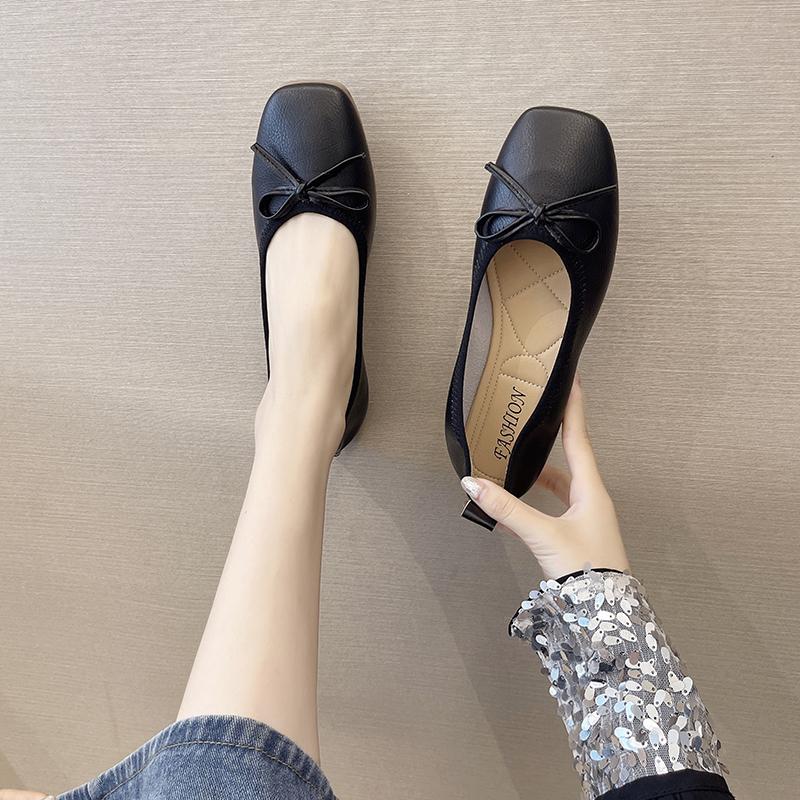 2026 Neue Frühling Square Toe Damen Ballerinas Schlicht Flach zum Hineinschlüpfen Damenschuhe Weiche Sohle Schmetterlingsknoten Elegant Kleider Schuhe