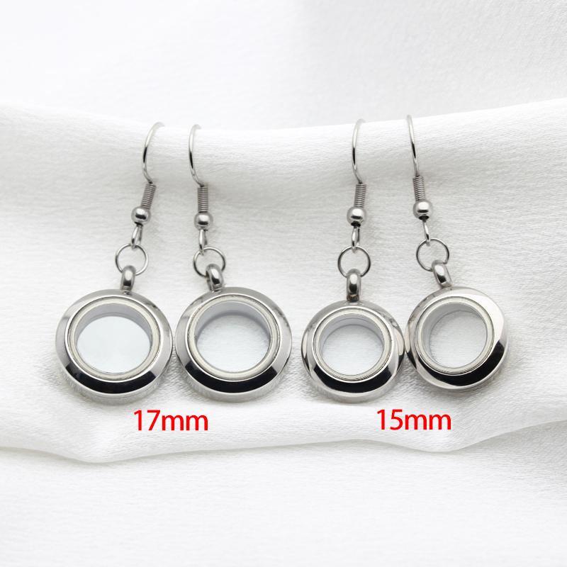 6Pairs 15mm/17mm Stainless Steel Earrings Floating Charms Locket Eardrop Glass Living Memory Earrings For Women Jewelry Making