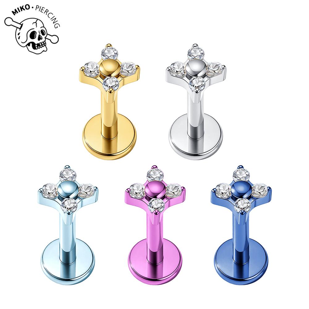 ASTM F136 Titanium Anodizing Four Petal Flower CZ Cartilage Earring 16G Internally Threaded Flat Back Labret Piercing Jewelry