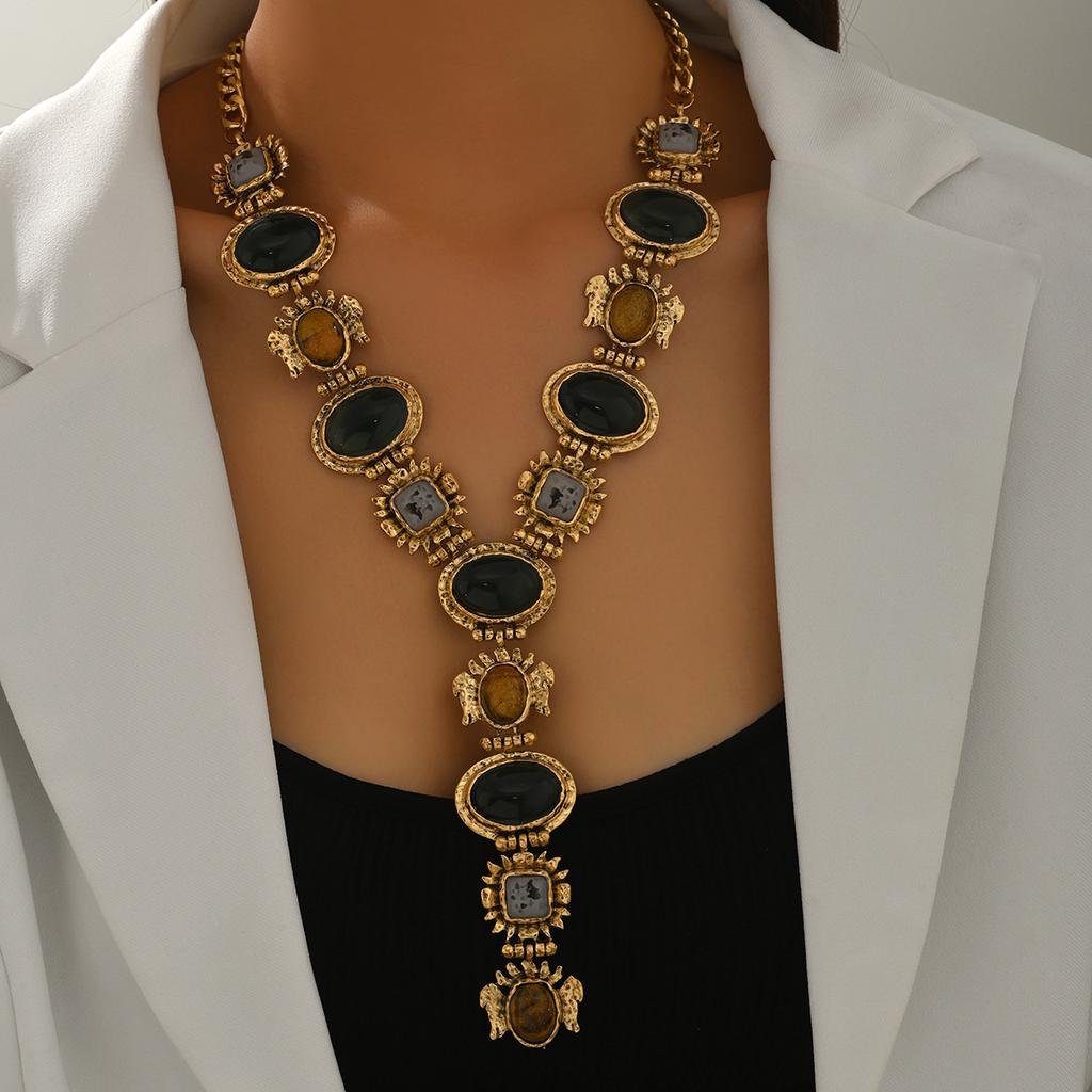 Böhmische Imitation Stein Metall Anhänger Halskette Zum Tragen im Urlaub Bühne und Musikfestival Modeschmuck Heißer Verkauf Party Geschenk