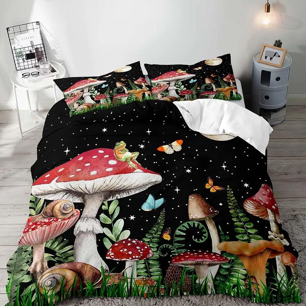 Comforter 3 Pcs Mushroom Bedding Set Butterfly Queen Boys Girls Kids Bedding Star Galaxy Botanical Boho Aesthetic Ultra Soft