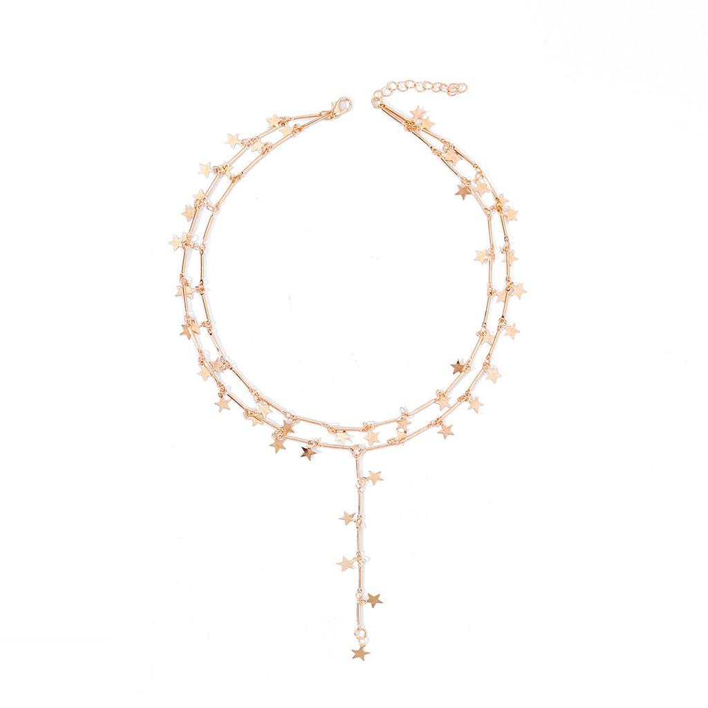Diese lang anhängende Halskette in Sternform, inspiriert von Vintage-Designs, zeichnet sich durch ein mehrschichtiges Design aus Zinklegierung mit einer galvanisierten Oberfläche für Haltbarkeit und Stil aus.. Die Kette misst, ideal für den Alltag.