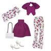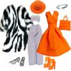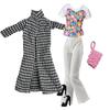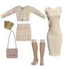 Elegantes Puppenoutfit für 1/6 Puppe Modepuppe Rosa Hahnentritt-Kleid Hut Goldener Gürtel Handtasche mit Schuhen Set