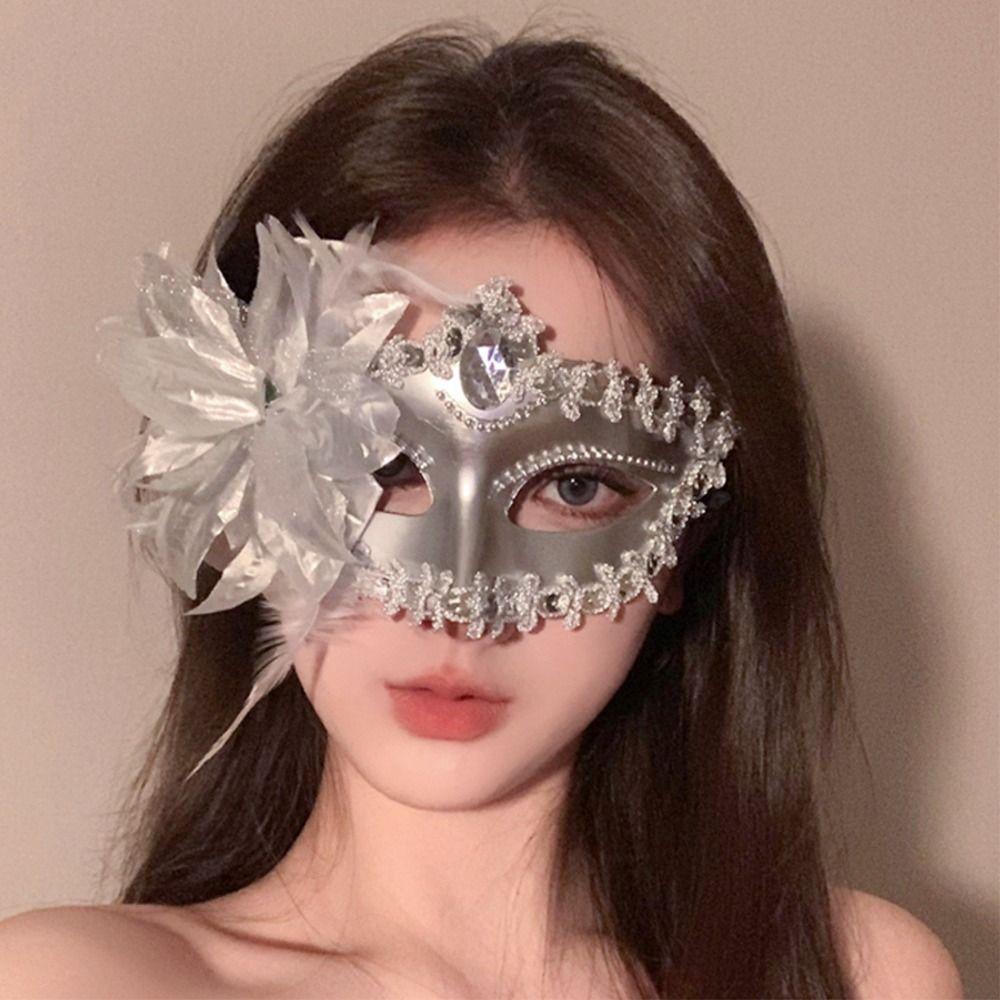Venezianische Party Handheld Masken Ballmasken mit Stiel Seitenblume Festival Kostümparty Halbmaske Karnevalsparty