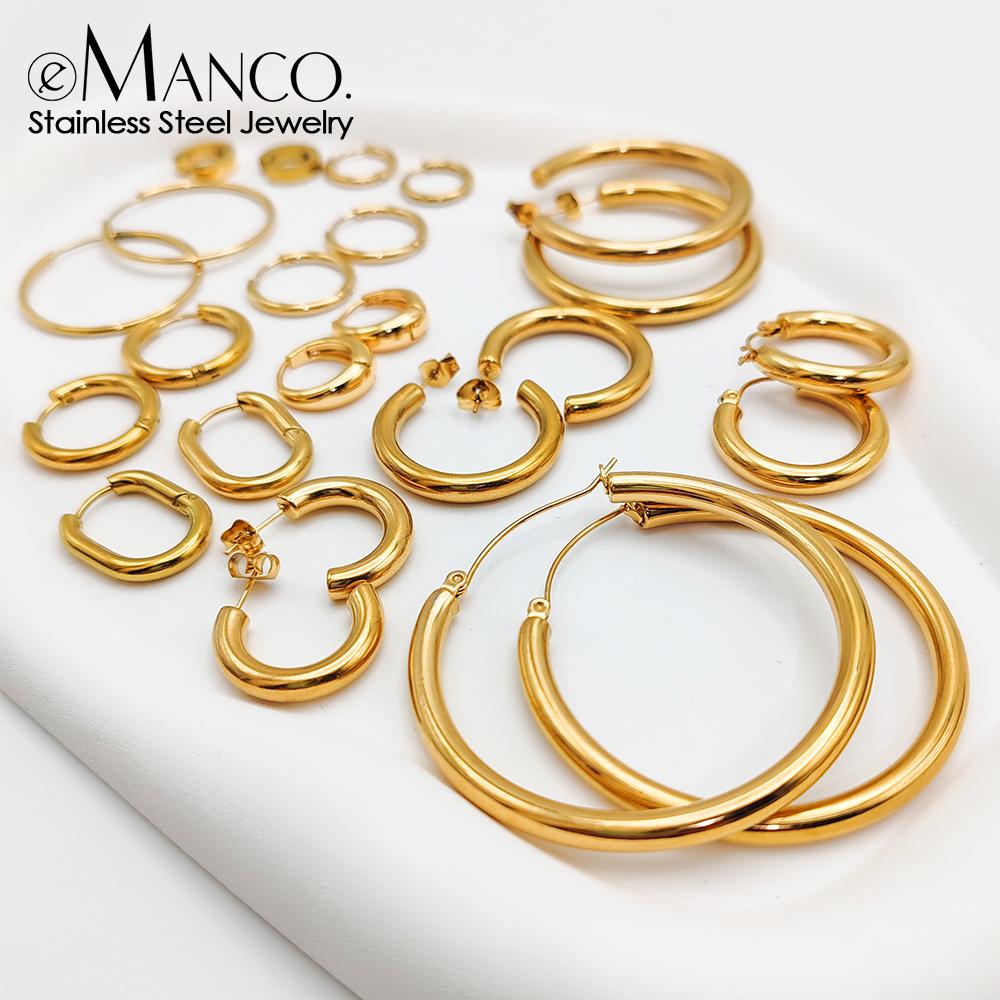 eManco Fashion Gold Size Circle Earrings Women's Jewelry Accessories Classic Stainless Steel Earrings Wholesale