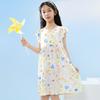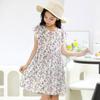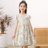 Girls' Cotton-padded Fly-sleeved Dresses, Big Children's Printed Floral Skirts, Back Straps, and Beach Skirts