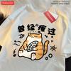 Mollige und niedliche Katze Baumwolle Damen T-Shirts Cartoons Druck T-Shirts Locker O-Ausschnitt Weich Kurzarm Sommer Lässig Damenkleidung