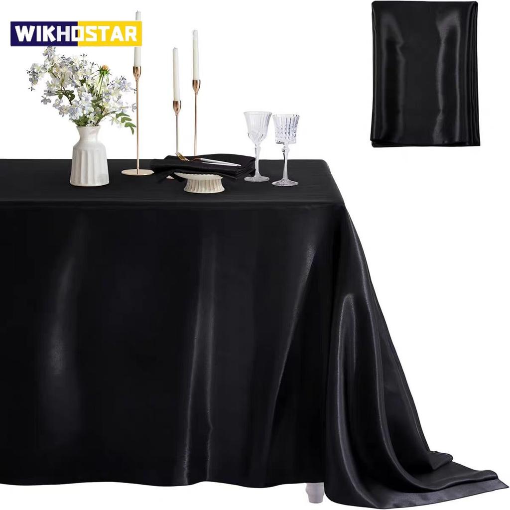 Rechteckige Satin-Tischdecke Hochzeitstischdecke Weiß Schwarz für Party Geburtstag Veranstaltungen Bankettdeko Zuhause Abendessen Tischdecken