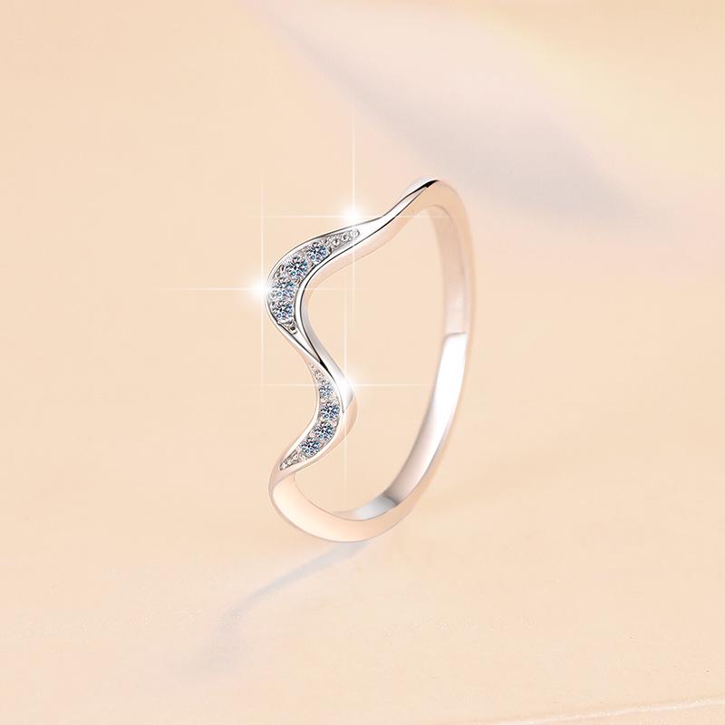 S925 Sterling Silver Moissanite Wave Ring for Women - Simple European & American Design