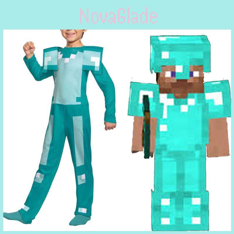 Minecraft Steve Rüstung Kinder Cosplay Kostüm Jumpsuit für Jungen und Mädchen Perfekt für Halloween und Verkleidungsveranstaltungen