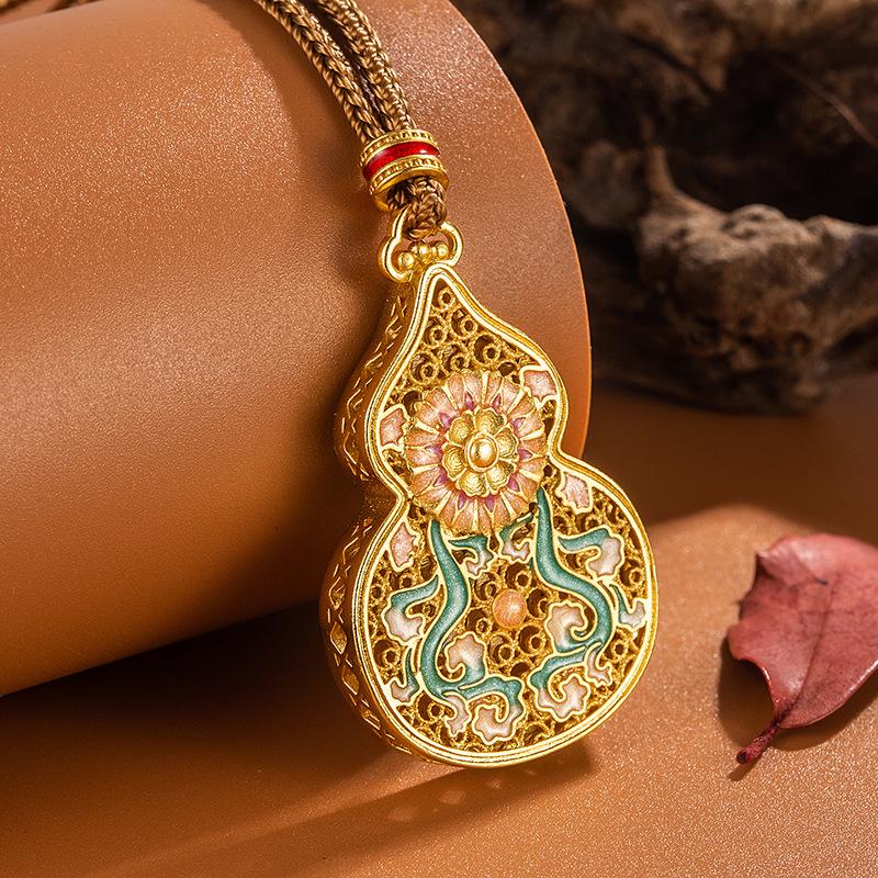 Elegant Gold Enamel Gourd Pendant Necklace - Retro Chinese Style