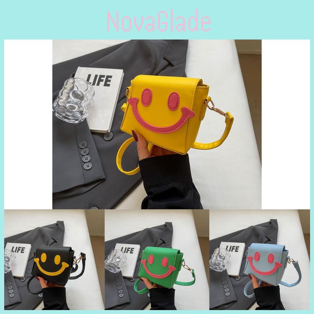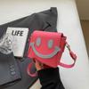 Cute Small Smile Face Color Block Pu Shoulder Bag With Magnetic Closure