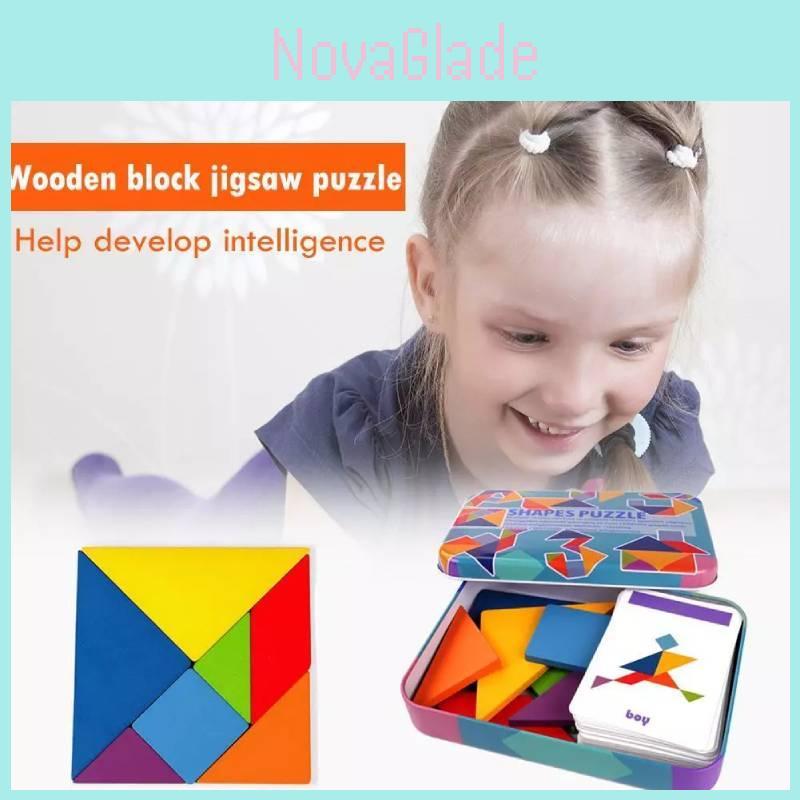 Langlebiges magnetisches Holz-Tangram-Puzzle für Kinder, Lernspielzeug für Kindergarten und Grundschule
