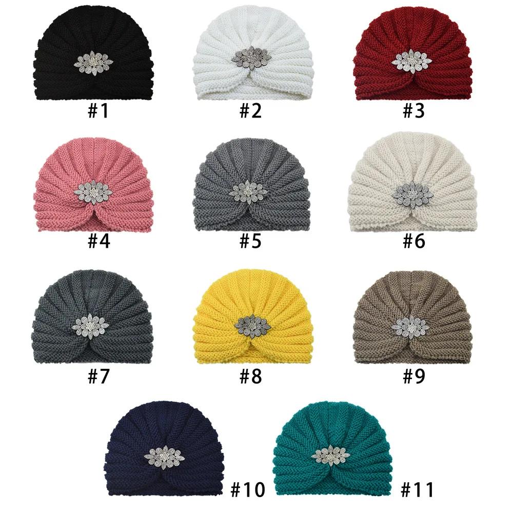 Diamond Knitted Turban Hat Bonnet Cross Wrapped Hat Muslim Bohemia Warm Turbante Cap for Women Winter Autumn Hair Accessories