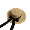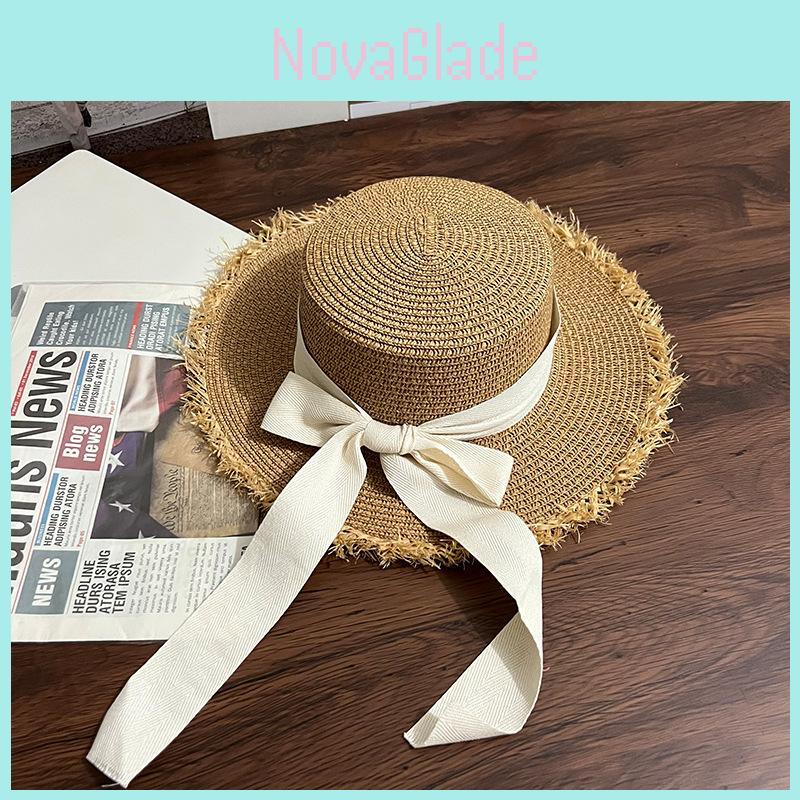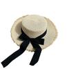 Sommer Frische Runde Oberseite Strohhut Damen Strandurlaub Sonnenhut Schmetterlingsknoten Binden Sonnenschirmkappe